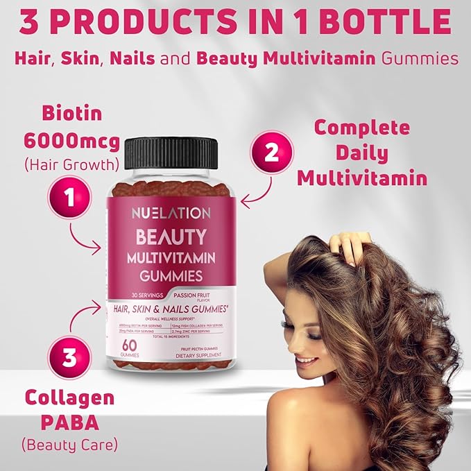 - Hair Skin and Nails Vitamins - Boost your beauty from the inside out with biotin and collagen-infused hair skin and nails gummies. Our targeted formula promotes stronger, healthier hair, smoother skin, and resilient nails