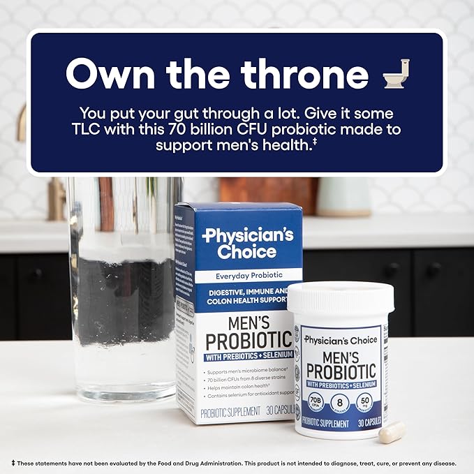 Physician's CHOICE Probiotics for Men - 70 Billion CFU - 8 Strains - w/Selenium & Organic Prebiotics - Supports Digestive Health, Microbiome, Colon, & Immune Health - Advanced Men's Probiotic - 30ct