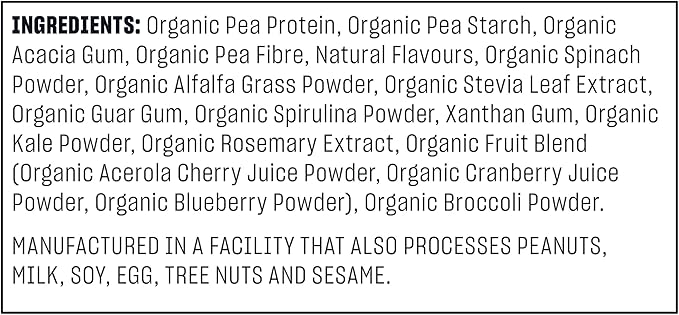- Heaps of greens: a nutritious blend of spinach, kale, alfalfa grass and broccoli without the bitter taste