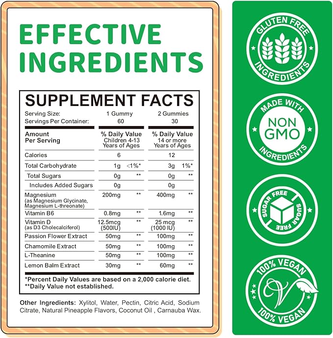 - Calm Magnesium Gummies: Formulated with Magnesium Glycinate, Magnesium L-Threonate, L-Theanine, Lemon Balm, Passion Flower, Chamomile, Vitamin B6 & D3, ReviNutra calm magnesium gummies help promotes restful sleep, calm, energy, relaxation, mood, bones & muscles support for your little one, providing a physical foundation for their happiness and activity