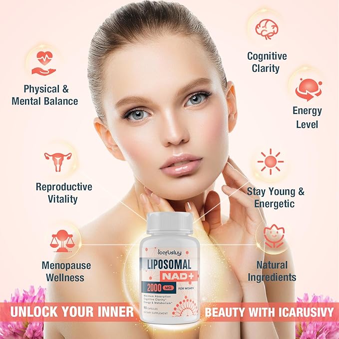 - Comprehensive Targeted for Women's Wellness Formula, 2000 mg Per Serving - This high-potency liposomal NAD+ supplement, crafted for women, delivers a potent 2000 mg per serving. It combines NAD+ with a carefully selected blend of herbal extracts tailored to women’s unique needs. As NAD+ levels decline with age. NAD+ supplement helps maintain energy levels and cognitive function, contributing to a more youthful and energized state.