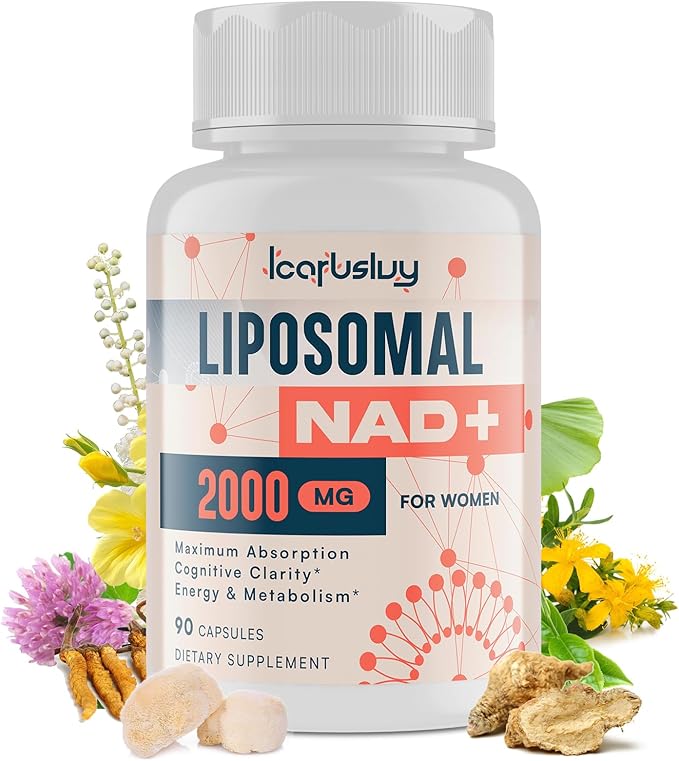 2000MG Liposomal NAD+ for Women, NAD+ Supplement, with Ashwagandha, Maca, Black Cohosh & Ginkgo Biloba, Max Absorption, NAD Plus - Menopause, Cognitive Clarity, Energy, Aging Defense, 90 Capsules