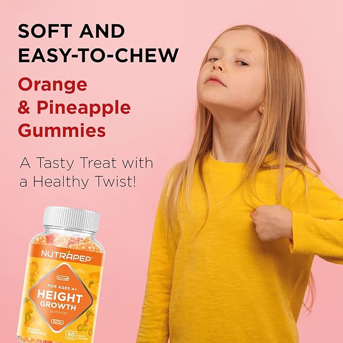 - Deliciously Chewy, Growth Support for Every Kid: Nutrapep Height Growth Support Gummies are designed to please your child's taste buds while delivering essential nutrients for their well-being. Each chewy gummy is enriched with vital vitamins and minerals to keep kids nourished and energized during their growth phase. With a delightful pineapple and orange flavor, these gummies make healthy support both tasty and fun.