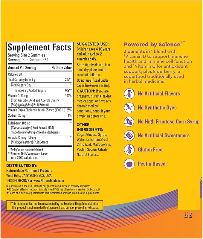 - SUPERFOOD IMMUNE SUPPORT SUPPLEMENT FOR KIDS & ADULTS: Nature Made Wellblends Immune & Superfood Gummies is a 3-in-1 blend of Elderberry, Vitamin D and Vitamin C