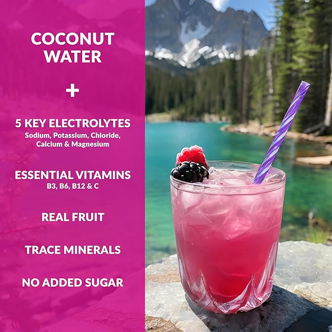 Reef Replenish Hydrating Electrolyte Drink Mix - Wildberry, 30 Servings - Hydration Powder w/Coconut Water - Non-GMO, No Added Sugar, 5 Key Electrolytes + Vitamins, Natural Trace Minerals, USA Made