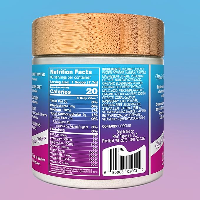- ELECTROLYTE SUPPORT: Reef Replenish wildberry electrolytes powder includes five essential electrolytes—sodium, potassium, magnesium, calcium and chloride—to maintain ideal hydration levels and electrolyte balance.