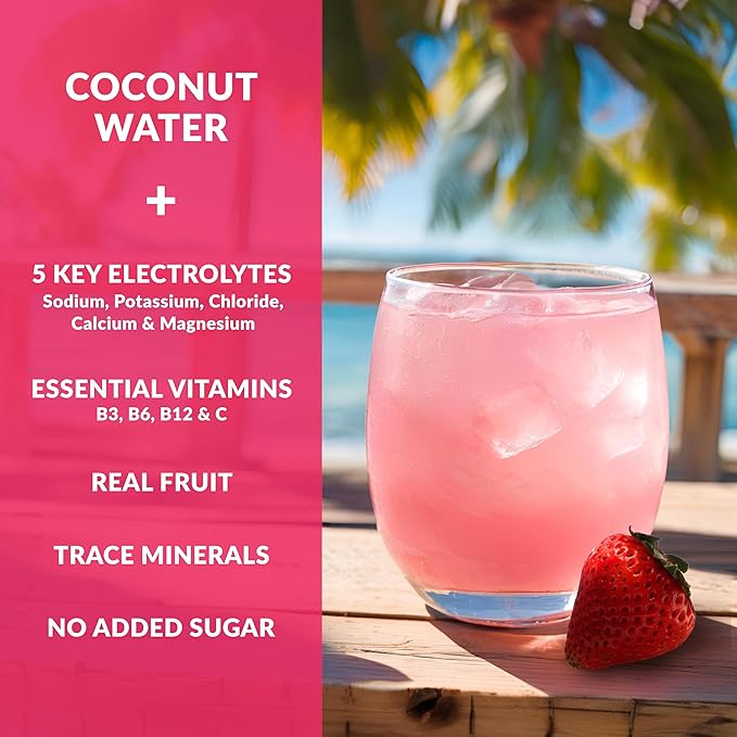 Hydrating Electrolyte Drink Mix - Strawberry Kiwi, 30 Servings - Hydration Powder w/Coconut Water - Non-GMO, No Added Sugar, 5 Key Electrolytes + Vitamins, Natural Trace Minerals