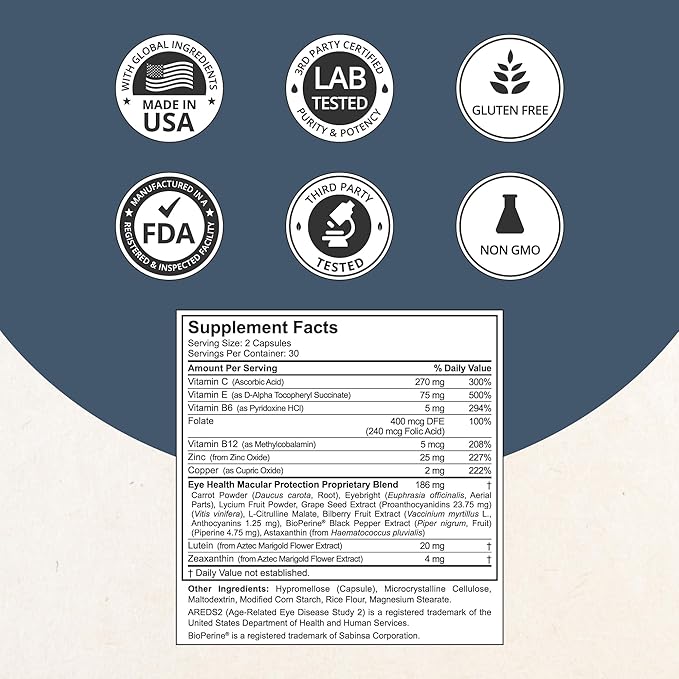 - Areds2 Formula - In today’s digital age, eye strain and fatigue are common challenges. That’s why our supplement is backed by the AREDS 2-based formula, with necessary nutrients including Lutein, Zeaxanthin, Vitamin C, Vitamin E, Zinc, and Copper, to promote optimal eye health and help preserve vision in adults.