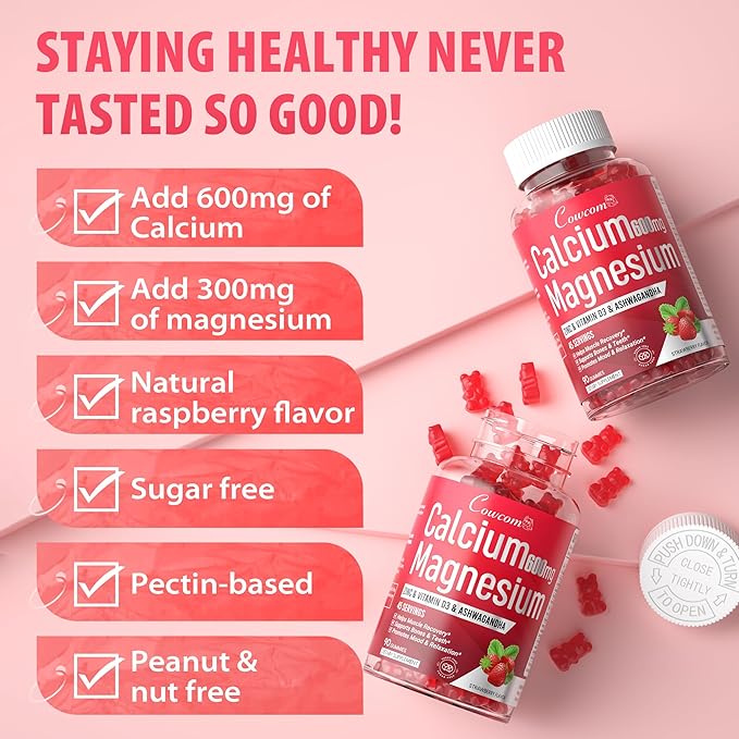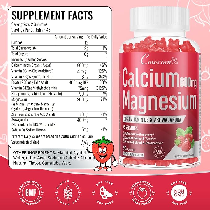 - Assured Quality:Cowcom is a natural dietary supplements brand that focuses on your daily health,We guarantee that all of our Calcium Magnesium Zinc Gummies are GMP certified and tested for purity and potency by an independent third party!