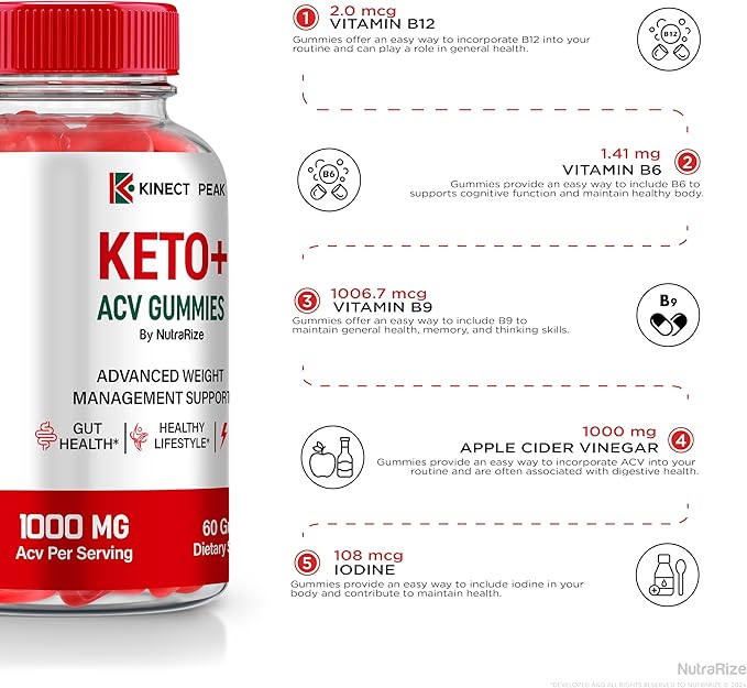 (2 Pack) Kinect Peak Keto ACV Gummies, KinectPeak Keto + ACV Supplement, All Natural Keto Plus Apple Cider Vinegar, Premium 1000MG Formula Plus Vitamins, Official Gomitas Reviews (120 Gummies)