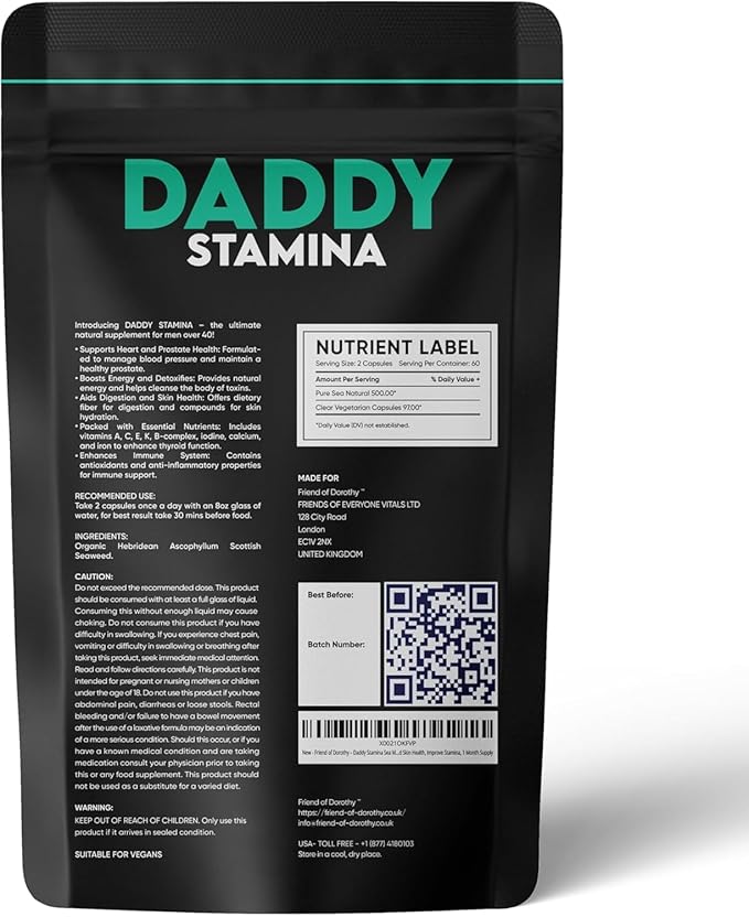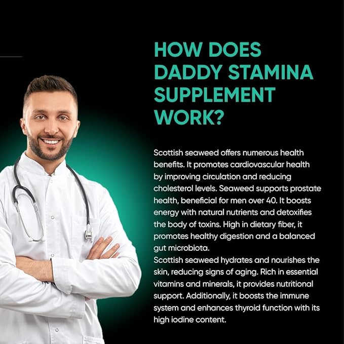 Daddy Stamina Sea Moss Capsules - Pure Seaweed Supplement for Energy and Skin Health, Ultimate Anti-Aging Natural Supplement for Men