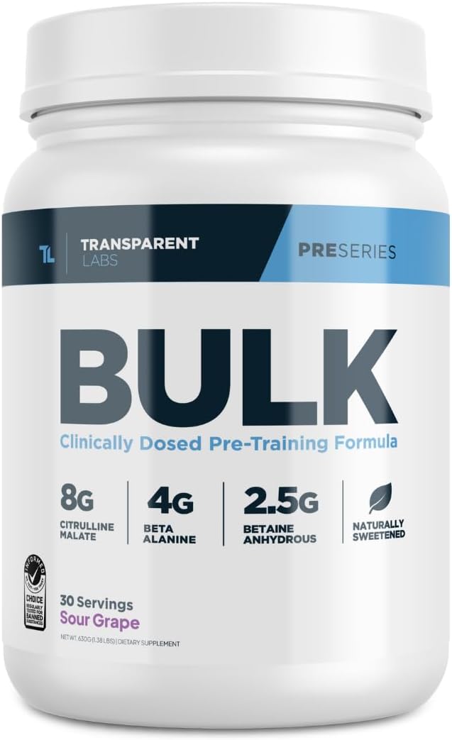 - Enhanced Performance: Transparent Labs Bulk Pre-workout isn't just another energy booster. It's a comprehensive performance enhancer. With a combination of ingredients tailored to enhance strength, increase muscle pumps, boost stamina, sharpen focus, and provide sustained energy, Bulk empowers you to take charge of your workouts. Whether you're aiming to set new personal records or achieve lean muscle growth, Bulk is your trusted partner on your fitness path.