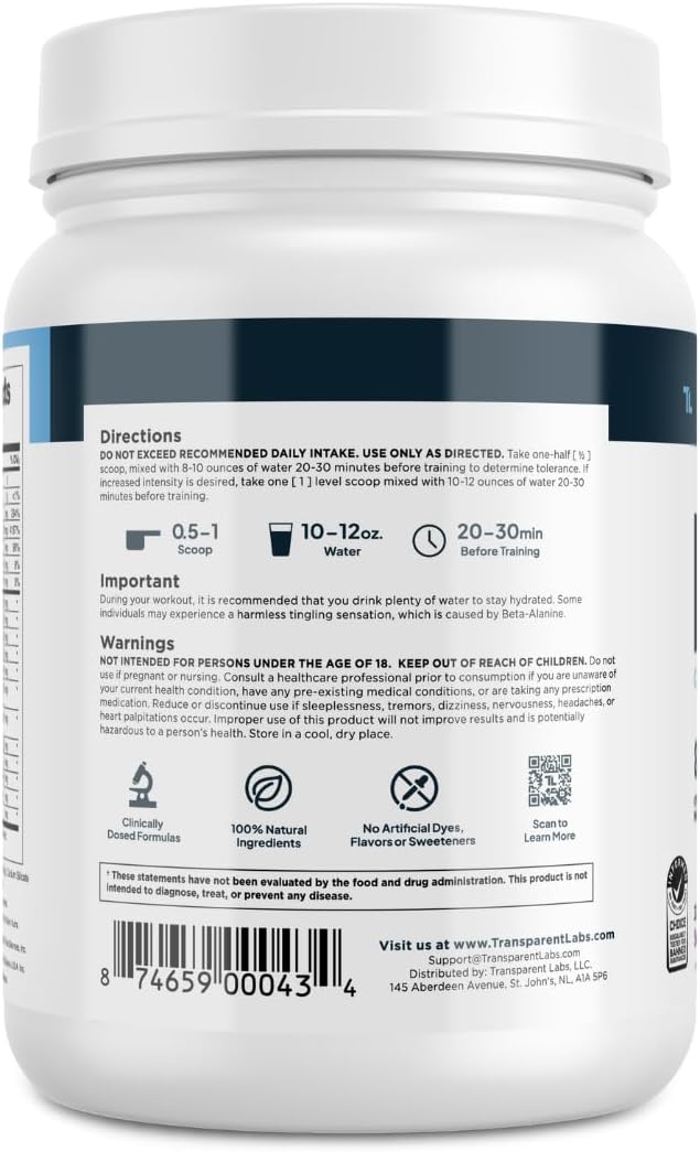 - Science-Backed Formula: Transparent Labs Bulk Pre-workout is distinguished by its extensive, evidence-based formula that includes key ingredients such as Citrulline Malate, Beta-Alanine, Betaine Anhydrous, Taurine, L-Tyrosine, AlphaSize Alpha-GPC, and more. This carefully crafted blend is designed to provide a holistic boost to your workout performance, ensuring you have the necessary tools to push your limits and achieve your fitness goals.