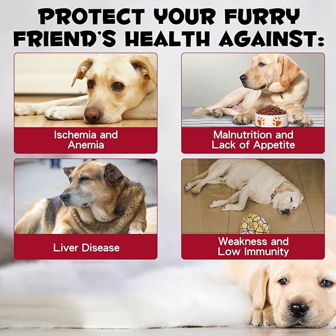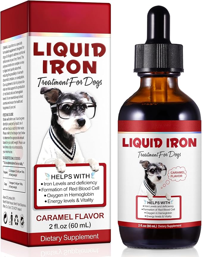 - Dog Liquid Iron Support - Our dog supplement for anemic dogs may help with iron levels and deficiency, formation of red blood cell, oxygen in hemoglobin. It may helps improve their energy levels, vitality, and assists dogs healthy, increases energy, and enhances athletic performance.