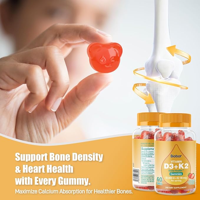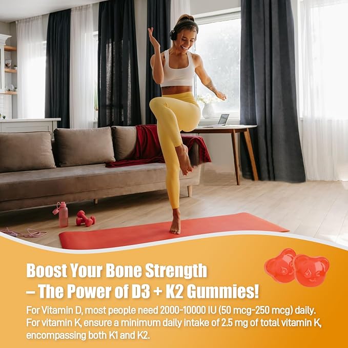 - Bone Health Support:Formulated with 2000 IU of Vitamin D3 and 100 mcg of Vitamin K2 to promote strong bones and optimal calcium absorption