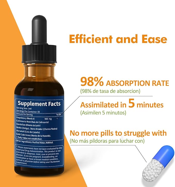 - ★KIDNEY STONES DISSOLVER & DETOX SUPPORT: Our Collinsonia drops help clear kidney stones and waste. Stone Breaker & Gold Coin Grass are known for breaking down kidney stones, easing discomfort, and reducing recurrence. Paired with Silicon-rich Horsetail, they prevent new stones and speed up removal. We also added Dandelion, a natural diuretic, to pass the stones through urine faster. These herbs improve kidney function, reduce swelling, and support urinary tract detox cleanse and repair.*