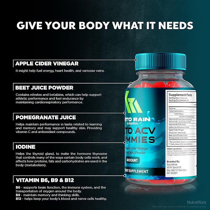 (2 Pack) Keto Rain ACV Gummies, Official KetoRain Keto ACV Gummies, All Natural Keto Supplement, Keto + Apple Cider Vinegar, Keto Plus ACV Reviews (120 Gummies)
