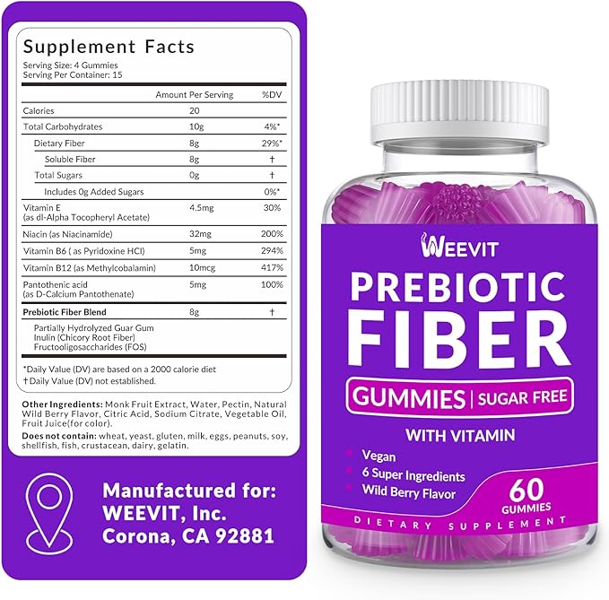 - Enhance Fulfill & Boosts Energy: Support your fulfill and energy with our fiber vitamin gummies, featuring of vitamin E, B12, B6, B3. Designed to promote fulfill, these low-calorie gummies help reduce food intake, and support metabolism while keeping you energized.