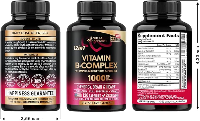 - Made with Care & Love – At NUTRAHARMONY, we desire to provide you with quality and outstanding service. If, for any reason, you are not happy with Vitamin B Complex capsules, just let us know! Drop a message to our support team to share your outstanding experience with B complex vitamins! We care for your well-being!