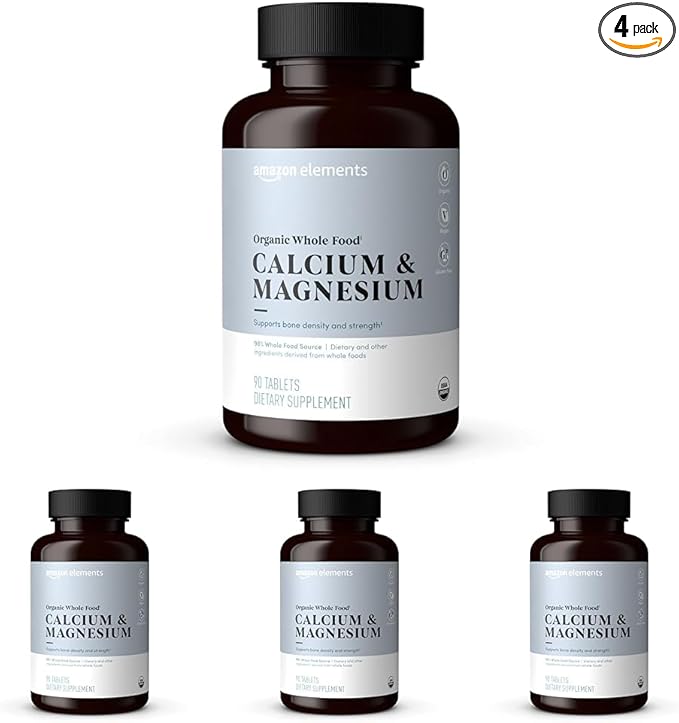 Amazon Elements Organic Whole Food Calcium & Magnesium, 90 Tablets (Pack of 4)