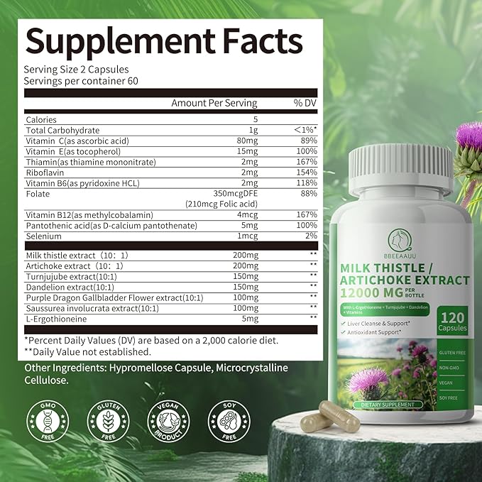 - Comprehensive 16-in-1 Liver Support Formula: Our unique liver support capsules are enriched with herbal extracts such as milk thistle, artichoke, turnjujube, dandelion, purple dragon gallbladder flower, and saussurea involucrata to provide superior liver support. Milk Thistle promotes the production of new liver cells to repair and nourish damaged liver. Artichoke is known to enhance liver function, lower cholesterol and diuretic.
