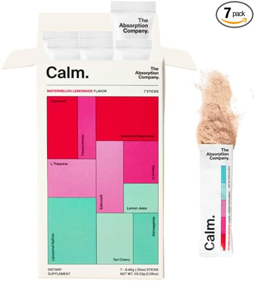 Calm Drink Mix - Relaxation Aid with Magnesium, Ashwagandha, L-Theanine, & Vitamin D - Supports Cortisol Regulation and Mood for Men & Women - Watermelon Lemonade Flavor 7 Sticks