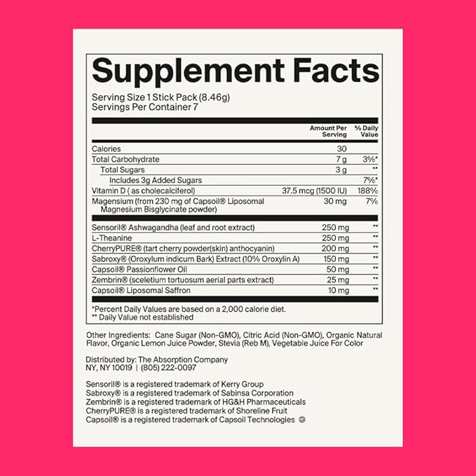 Calm Drink Mix - Relaxation Aid with Magnesium, Ashwagandha, L-Theanine, & Vitamin D - Supports Cortisol Regulation and Mood for Men & Women - Watermelon Lemonade Flavor 28 Sticks
