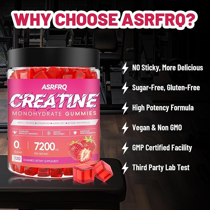 - 【Vegan, Gluten Free, Sugar Free】Each bottle contains 120 count Vegan, Non-GMO & Gluten-free, Sugar-free creatine monohydrate gummies. Super delicious and enjoyable taste.