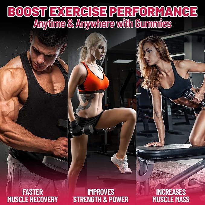 - 【Key Benefits】Our Creatine monohydrate gummies are an easy way to consume, 2 gummies per serving, you can take it at any time & anywhere. It increases muscle strength, muscle recovery, improve endurance and energy boost. Suitable for a variety of users, and enjoyable taste.