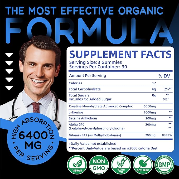 - Commitment to Excellence: Produced in a facility compliant with strict cGMP standards, our Creatine Monohydrate gummies, in Creatine 6400mg, stands as a testament to our dedication to quality. You can trust in our product's consistency and excellence, batch after batch.