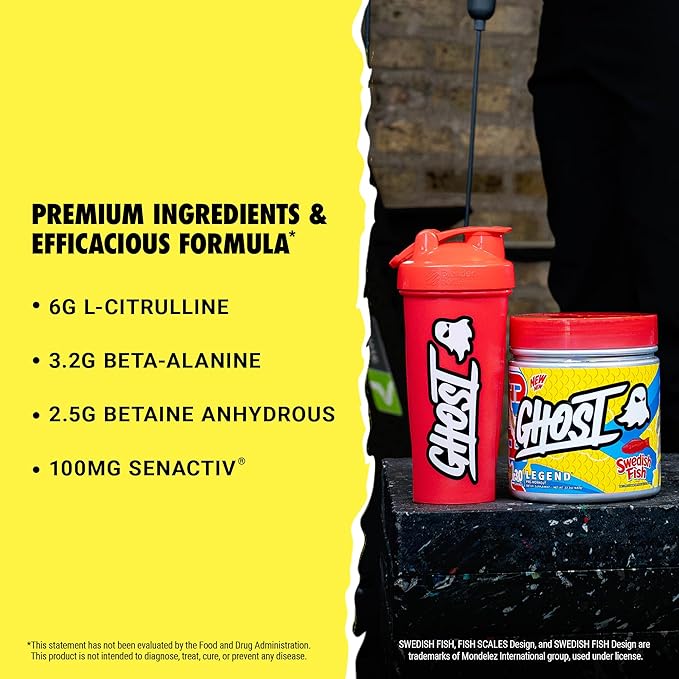 - Legendary Pre-Workout: GHOST Legend pre-workout combines a standout energy & focus formula with premium pump ingredients in the authentic Swedish Fish flavor you know & love to get you feeling like a legend whenever you need it most. V4 provides more energy, more pumps, more focus, and more grams per serving .* 1 scoop per serving, 30 servings per container. Compared to original GHOST Legend pre-workout formula.