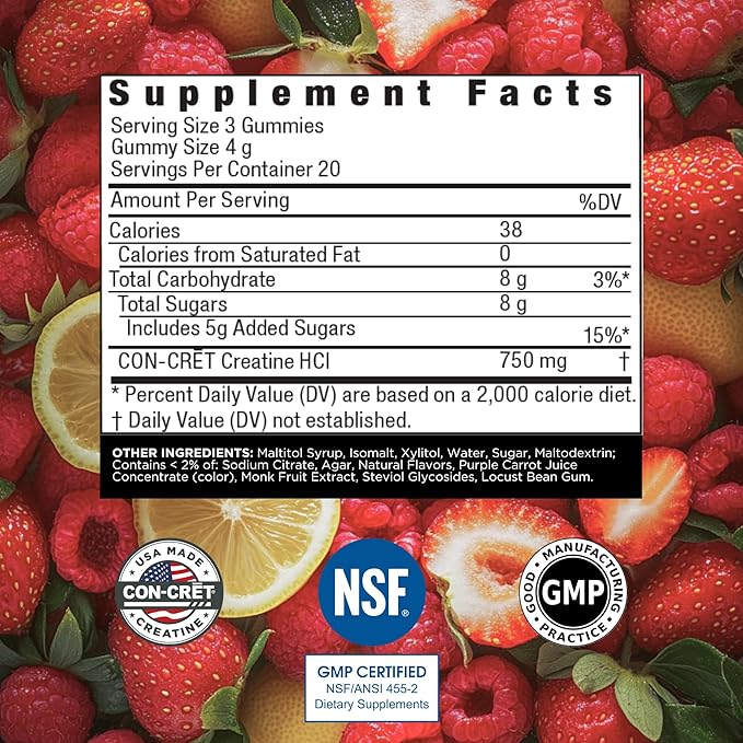 - Convenient & Delicious Creatine HCl Gummies*: Enjoy all the benefits of CON-CRET Creatine HCl in a tasty, easy-to-chew gummy form. These gummies have shown increased absorption and effectiveness with none of the mess or bloating associated with traditional powders.