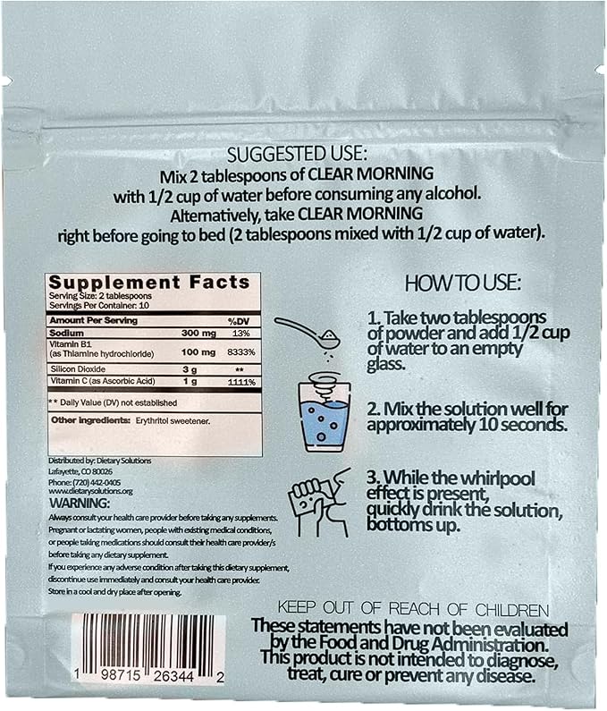 Clear Morning - Revolutionary After-Drinking Recovery Mix | Magical Morning Wellness Formula & Hydration Support | Detox with Silicon Dioxide