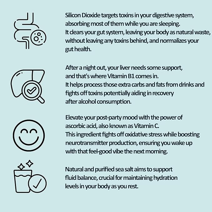 - Detoxification Support: Helps your body eliminate toxins and restore balance after late nights or stress.