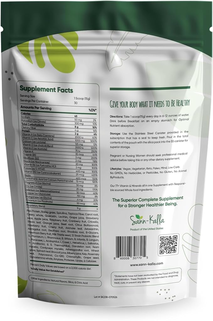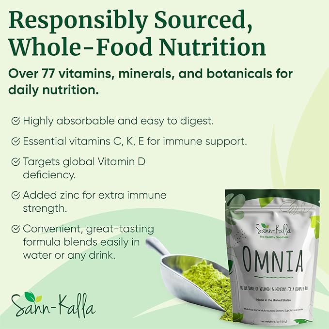 - Sann Kalla Omnia provides Comprehensive Daily Nutrition. A blend of vitamins, minerals, and whole-food sourced ingredients, providing you with a complete daily supplement that supports energy, immunity, gut health, and overall wellness.