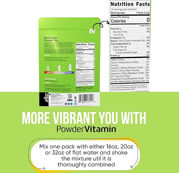 - Keep Yourself Hydrated – Without added calories. PowderVitamin Sugar-Free Electrolyte Powder Plus aids in per workout & post workout muscle recovery with potassium and essential mineral salts.