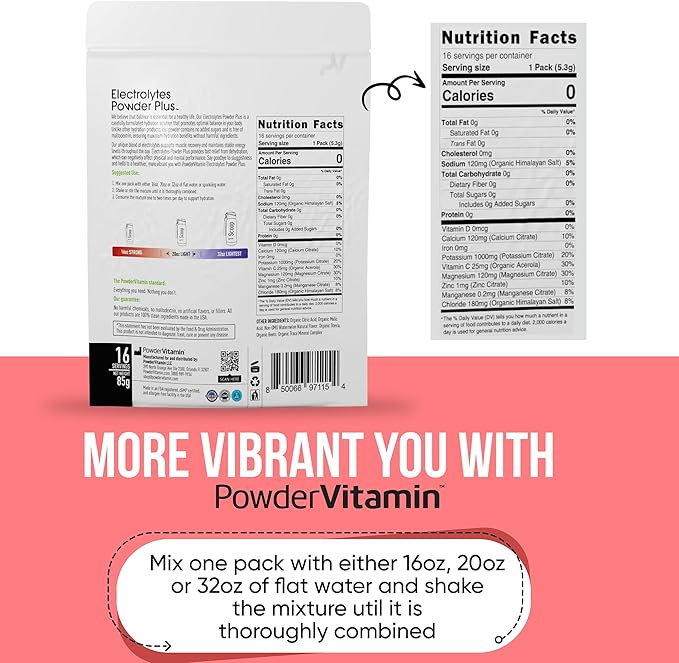 - Keep Yourself Hydrated – Without added calories. PowderVitamin Sugar-Free Electrolyte Powder Plus aids in per workout & post workout muscle recovery with potassium and essential mineral salts.