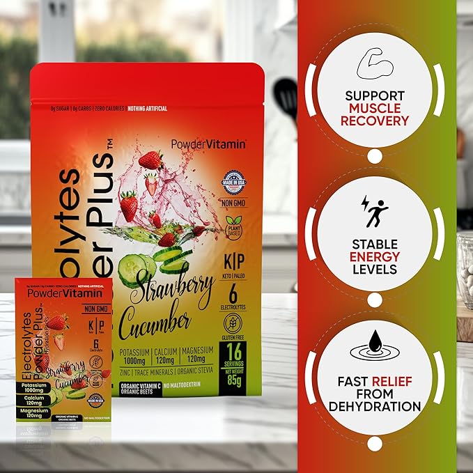 - Easy To Make – By stirring 1 packet into flat or sparkling water, our sugar-free electrolytes powder serves 16 hydration packets of refreshing keto Strawberry Cucumber. It is a thirst-quenching recovery drink.