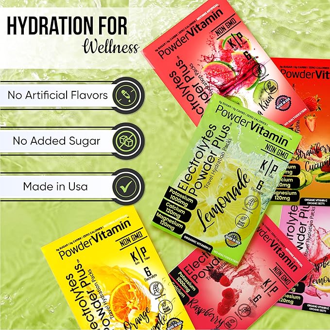 - Keep Yourself Hydrated – Without added calories. PowderVitamin Sugar-Free Electrolyte Powder Plus aids in per workout & post workout muscle recovery with potassium and essential mineral salts.