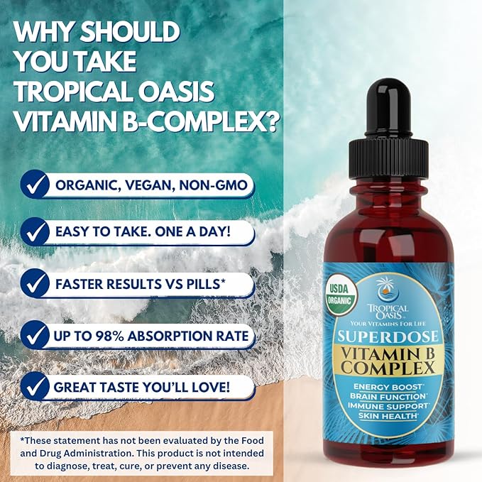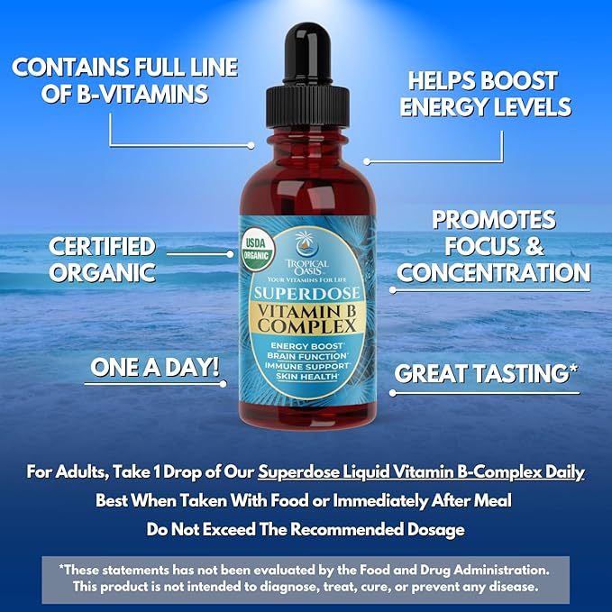- Boost Your Energy, Focus, and Metabolism – Tropical Oasis B Vitamin Complex is loaded with key B vitamins, including B3, B6, Biotin, Folate, and B12, to boost your energy levels, improve focus, fight fatigue and support healthy metabolic function.