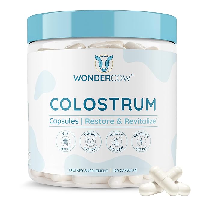 WONDERCOW Colostrum Capsules Supplement for Gut Health, Immune Support, Muscle Recovery & Wellness | Natural IgG Pure Whole Bovine Colostrum Superfood, Unflavored, 30 Servings