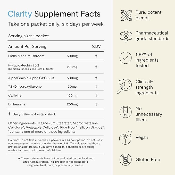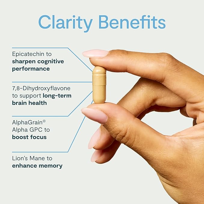 Clarity - Focus Supplements with Nootropics for Daily Brain Support - Lion's Mane & Alpha GPC to Support & Maintain Focus (24 Servings)
