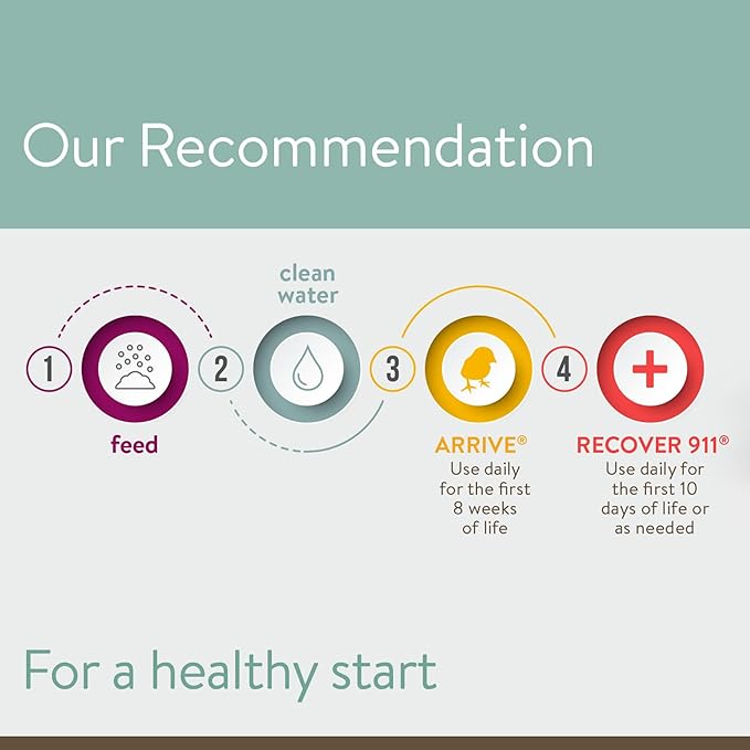 - SAFE FOR ALL POULTRY SPECIES: Add one teaspoon of Arrive per gallon of water until chicks are 8 weeks old. For birds 8 weeks and older, we recommend FlockLeader Thrive.