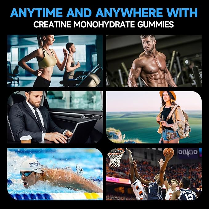 - Perfect for On-the-Go: Designed for both men and women, these creatine monohydrate gummies fit any lifestyle. Ideal for travelers, gym-goers, and those with busy schedules, they offer a convenient, portable solution for boosting workout performance without the need for messy powders.