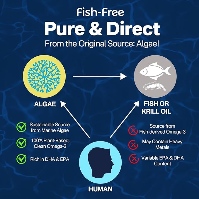 - SUSTAINABLY SOURCED & PLANT-BASED: Vegan Omega-3 provides the same health benefits as traditional fish oil but without the unpleasant fishy aftertaste or fish burps. Our Omega-3 is sourced from algae, the same place fish get it, but it is more sustainable and cleaner than fish oil. LILICARE's Omega-3 softgel provides 2000mg of algal oil, delivering 1200mg of Omega-3 (including 720mg of DHA and 360mg of EPA) as a plant-based alternative to fish oil 1200mg.