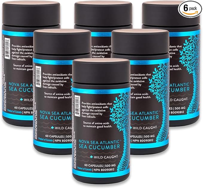 Wild Sea Cucumber Supplement Capsules Antioxidant Healthy Energy Supplement with Fucosylated Chondroitin Sulfate Collagen Glycosides Vitamins Minerals(Pack of 6)