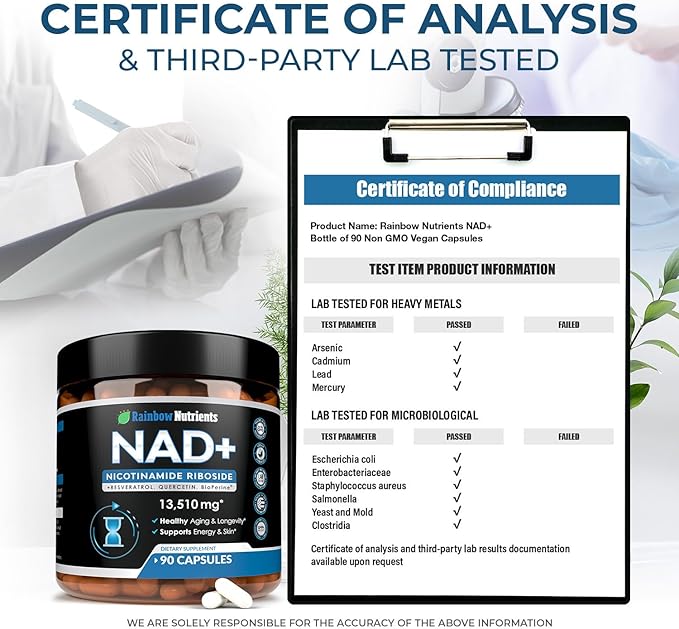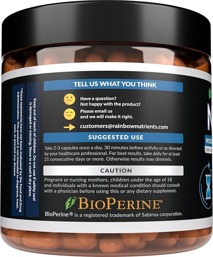 - 100% SATISFACTION GUARANTEED - At Rainbow Nutrients, our mission is to help people live longer, happier, and healthier lives. If for some reason, you are not satisfied with our Nad+ Supplement, our products are backed by our manufacturer's money-back guaranteed promise. Yes, you have nothing to lose. Try it, risk-free!