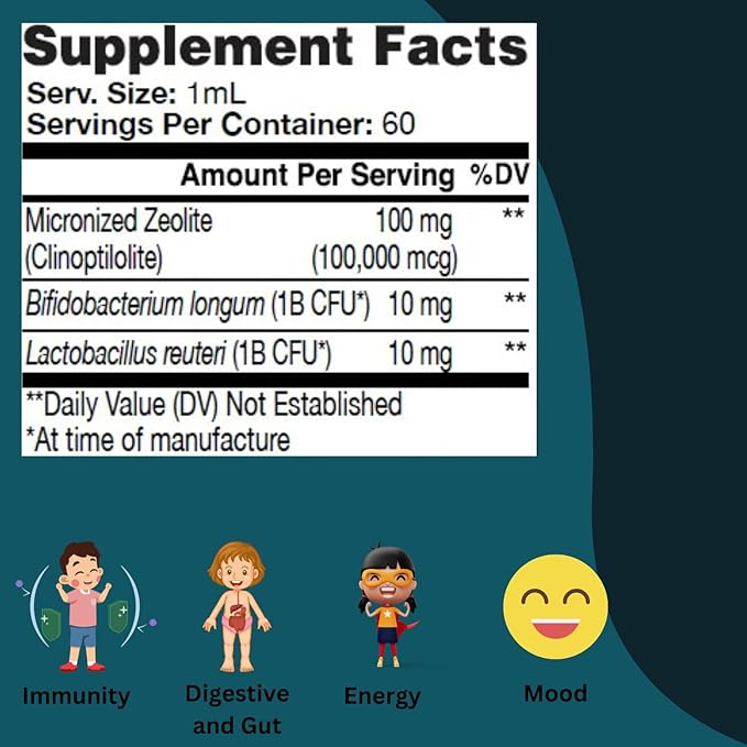 - Safe and Trusted: Made with premium, non-GMO ingredients, our zeolite liquid suspension with probiotics is crafted specifically for kids, ensuring safety and effectiveness