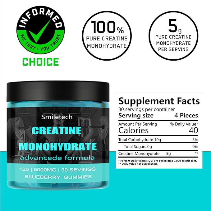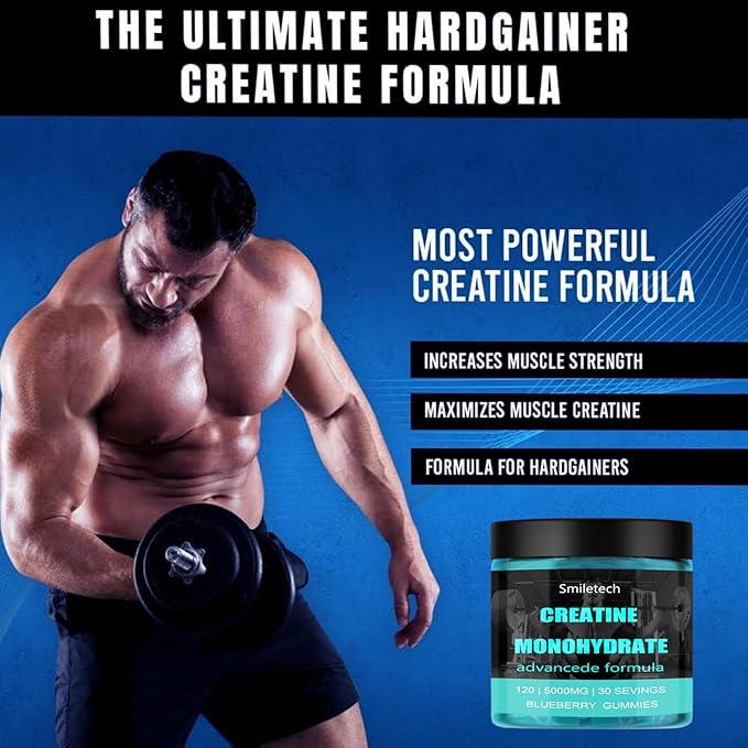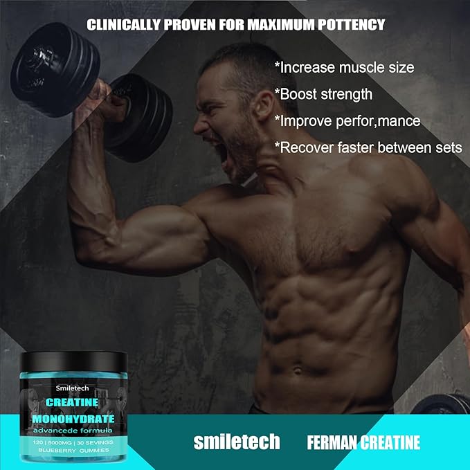 - 【Premium Formula & Maximum Efficacy】: Each serving of our creatine monohydrate gummies contains 5g,which is equivalent to 2-4 gummies of pure creatine monohydrate.This advanced formula is enhanced with calcium lactate and beta-carotene,natural bllueberry, delivering maximum efficacy for muscle strength and energy