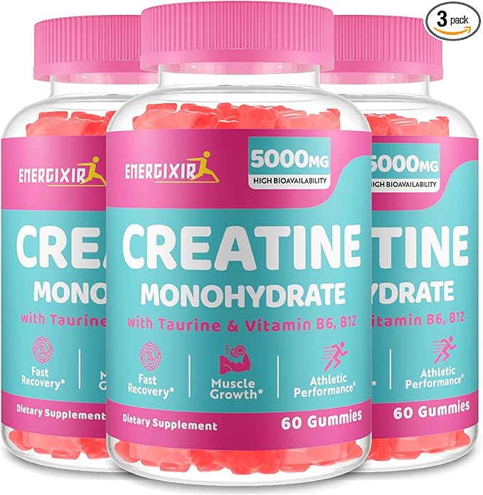 - Optimal Efficiency And Better Absorption: These creatine monohydrate gummies combine Taurine with vitamins B6 and B12 for athletic performance, energy production and metabolism. Their scientifically formulated blend ensures a perfect balance of safety and effectiveness. It has a tasty berry flavor and easy to take, just get 2 gummies daily in an easy and delicious way